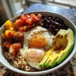 This breakfast bowl is incredibly versatile and can be enjoyed on its own as a quick breakfast or paired with a side of fresh fruit for added sweetness. For those who love a little crunch, consider topping it with some crispy tortilla chips or a sprinkle of cheese. This dish can also be garnished with fresh herbs like cilantro or parsley to elevate the flavors even further.