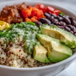 I learned to make this Avocado Quinoa Salad Bowl on a busy weeknight and it quickly became a go-to. It’s bright, creamy, and vibrant—everything I want in a single bowl. This is the kind of salad you bring to potlucks, pack for lunch, or serve alongside fish for an easy dinner. If you like healthy bowls with bold citrus flavor and a little Tex‑Mex flair, this one will hit the spot. (If you want another avocado-forward salad idea, check out this chickpea and avocado salad I sometimes alternate with.)