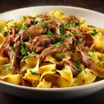 If you want more inspiration for similar homestyle beef-and-noodle comfort, check out this Amish Beef and Noodles Recipe for another slow-cooker take. For a nostalgic family-style approach, see Grandma’s Beef and Noodles – Gimme Some Oven for serving ideas and slight variations.