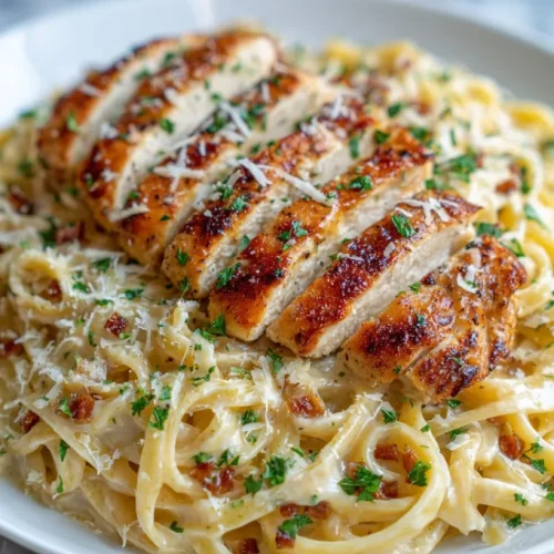 I’ve been making this Chicken Alfredo for years when I want rich, comforting pasta without the fuss. It’s creamy, garlicky, and topped with golden slices of pan-seared chicken — great for a cozy weeknight or an easy dinner that impresses guests. If you like simple, flavorful chicken mains, you might also enjoy this balsamic baked chicken breast as another go-to.
