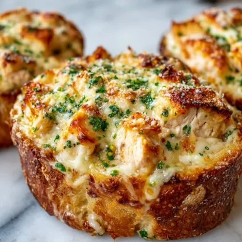 I’ve been making Chicken Alfredo Garlic Bread Bowls whenever I want something indulgent, portable, and impossibly comforting. Cubed, seasoned chicken tossed with creamy Alfredo and pasta, spooned into toasted Kaiser roll “bowls” and finished with melted Parmesan—this recipe turns weeknight pasta into a fun handheld meal the whole family loves. I first tried a viral version that inspired this riff; if you’ve seen the trend, you’ll get why it’s so addictive: the bread soaks up saucy pasta while staying crisp at the edges. For the original inspiration I referenced, see the viral Chicken Alfredo garlic bread that started it all.