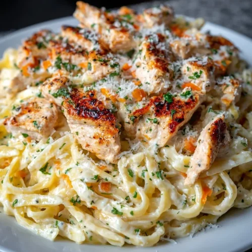 - Plating: Twirl portions of fettuccine onto warmed plates, lay sliced chicken across the top, and finish with a sprinkle of extra parmesan and cracked black pepper.