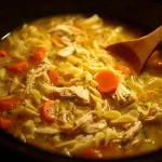I make this slow-cooker chicken noodle soup year-round — it’s the ultimate in easy comfort. Tender shredded chicken, soft broken spaghetti, and a clear, savory broth simmered with carrots, celery, onion and herbs. It’s perfect for busy weeknights, sick days, or whenever you want a bowl that feels like home without much fuss. If you like hands-off soups, you might also appreciate other slow-cooker takes like this one I reference sometimes: slow-cooker chicken noodle soup.