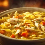 Perfect for sick days, chilly evenings, or when you want a low-effort family meal. It’s also a great pantry-and-fridge-cleanout recipe: use leftover cooked chicken, swap in different noodles, or add herbs you have on hand.