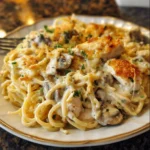 Chicken Tetrazzini is a comforting and creamy pasta dish that combines tender chicken, mushrooms, and spaghetti, all enveloped in a rich sauce and baked to perfection. This casserole-style dish is simple to make, yet it brings warmth to any gathering, making it a favorite for family meals and potlucks alike.