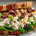 My go-to quick lunch is this Cranberry Chicken Salad — a bright, creamy mix that’s as easy to assemble as it is satisfying. Packed with tender shredded chicken, crunchy celery, and tart-sweet dried cranberries folded into tangy Greek yogurt, it’s perfect for busy weekdays, light weekend lunches, or a make-ahead addition to a picnic. I often swap it into lettuce wraps for a low-carb meal or pile it onto toasted whole grain bread for something heartier. If you like chicken salads with a balance of sweet and savory, you’ll also appreciate this take on the classic: Best Ever Chicken Salad.