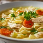 The first time I made this creamy chicken noodle soup, it felt like a warm blanket on a busy weeknight — familiar, comforting, and faster than you’d expect. This version balances a rich, silky broth with tender shredded chicken and classic vegetables so it’s hearty enough for dinner but gentle on picky eaters. If you’ve got leftover roast chicken or a rotisserie bird, this is the kind of recipe that turns pantry basics into a bowl everyone asks for seconds of. For a lighter take or to compare techniques, you might peek at a classic chicken noodle guide like this one from my site for inspiration: Classic Chicken Noodle Soup.