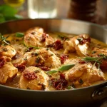 I learned this creamy sun-dried tomato chicken from a weeknight rescue: a quick skillet meal that looks special but comes together fast. Tender chicken breasts are seared until golden, then bathed in a silky cream sauce studded with sun-dried tomatoes, fresh basil, and Parmesan. It’s the kind of dinner that works for busy nights, easy date nights, or when you want something cozy without fuss. If you enjoy rich tomato-cream chicken dishes, you might also like this Creamy Tomato Basil Chicken for another flavor spin.
