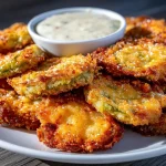 A: They’re best served immediately for maximum crunch. If you must prepare ahead, coat the pickles and refrigerate briefly, then air-fry just before serving. Re-crisp in the air fryer when ready.