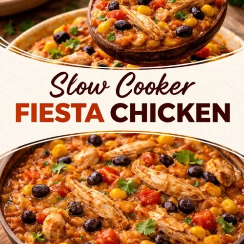 I grew up on busy weeknights where the slow cooker rescued dinner more nights than I can count — this Crock Pot Fiesta Chicken is one of those recipes that does it all: minimal prep, big flavor, and enough leftovers to feed a small army. Tender shredded chicken simmers with ranch and taco seasonings, black beans, corn, tomatoes, and green chiles for a Tex‑Mex crowd-pleaser that’s perfect for tacos, burrito bowls, or simply piled over rice.