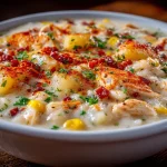I first made this Crockpot Chicken Corn Chowder on a rainy weeknight and it immediately became the kind of dinner my whole family asks for again and again. It’s a cozy, thick soup with tender shredded chicken, sweet corn, and soft potatoes — all hands-off in the slow cooker. If you want a low-fuss, crowd-pleasing comfort meal that stores and reheats well, this is a perfect choice. For a very similar take with extra tips, check this crockpot chicken corn chowder guide I often reference when testing timing and textures.