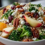 My first time making this Broccoli Apple Quinoa Salad I expected a simple side. What I got was a crunchy, sweet-and-tangy bowl that disappears at potlucks and makes weekday lunches feel deliberate. It’s a chilled quinoa salad studded with raw broccoli, crisp Honeycrisp apple, toasted nuts, dried cranberries and a bright mustard-apple-cider dressing. Make it for meal prep, a summer picnic, or to add a healthy option to holiday spreads — and if you want a warm, baked broccoli entree, try this creamy broccoli chicken crescent bake for another broccoli-forward meal.