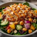 This salad hits a lot of checkboxes: protein-rich quinoa and chickpeas, iron-packed spinach, healthy fats from olive oil and almonds, and a pop of sweet-tart flavor from dried cherries. It’s gluten-free, vegetarian, and flexible enough to fit paleo-ish or vegan diets with small swaps. Make it for meal prep, bring it to a picnic, or serve it alongside roasted chicken for a balanced weeknight dinner.