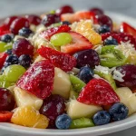 I keep a bowl of this simple fresh fruit salad in my fridge during warm months — it’s the kind of thing that brightens a lunch, tames a sweet tooth, and disappears at potlucks. This version is a straightforward mix of strawberries, blueberries, halved grapes, and diced melon, with an optional drizzle of honey and a squeeze of lemon to lift the flavors. It’s fast to make, naturally refreshing, and easy to adapt to whatever fruit looks best at the market.