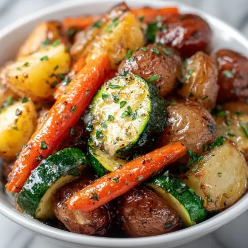 This Garlic Herb Roasted Potatoes, Carrots, and Zucchini recipe is an easy, versatile side that delivers big flavor with minimal effort — perfect for busy weeknights and dinner-party spreads alike. For another take on the same trio with slightly different seasonings and techniques, see Garlic Herb Roasted Potatoes Carrots and Zucchini – Eatwell101. If you want a plated version with extra herbs and a few optional add-ins, this guide from Garlic Herb Roasted Potatoes, Carrots, and Zucchini – Chefjar offers helpful variations and visuals.