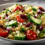 I first made this Incredible High-Protein Quinoa Salad on a hot weeknight when I wanted something filling, fresh, and fast. It’s a simple bowl of fluffy quinoa tossed with cherry tomatoes, cucumber, black beans, red onion, parsley, lemon juice, and olive oil — a recipe that lands on my table for lunches, potlucks, and quick dinners. If you like hearty salads that travel well and keep you satisfied, this one’s a staple. (If you’re looking for other hearty salads to rotate with this, try this chicken cashew crunch salad for a contrasting crunch and protein boost: Chicken Cashew Crunch Salad.)