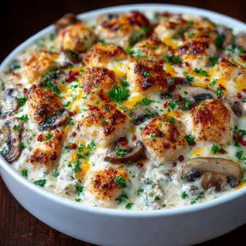 This casserole hits the sweet spot for busy cooks who don’t want to sacrifice flavor for convenience. It’s low-carb and keto-friendly thanks to heavy cream and cheddar replacing starchy thickeners. The crockpot keeps the chicken tender and lets mushrooms release deep savory notes into the sauce. It’s perfect for weeknights, easy meal prep, and even potlucks where you want a crowd-pleasing, comfort-food option that’s still health-conscious.