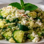 This salad balances bright citrus, tender quinoa, crunchy cucumber, and tangy feta — a combination that feels both light and satisfying. It’s quick to assemble, budget-friendly, gluten-free, and kid-friendly if you skip the herbs or feta for picky eaters. Great for weeknight dinners, potlucks, office lunches, and as a make-ahead side for barbecues. Because the dressing is lemon and good olive oil, the flavors keep improving after a short chill in the fridge.