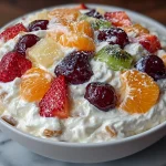 I still remember the first time my mom set this dish on the holiday table — a glossy, pearly bowl of tiny pasta beads and fruit, sweet and lightly creamy, that every kid reached for first. Mom’s Creamy New York Fruit Salad is part pasta salad, part dessert: acini de pepe (tiny bead pasta) binds canned fruits in a cooked, slightly thickened fruit glaze, and a final fold of whipped topping gives it that dreamy, cloud-like finish. It’s a classic at potlucks, holiday spreads, and any time you want a nostalgic, crowd-pleasing make-ahead side. If you love old-school American desserts, it pairs beautifully with richer sweets like a New York–style cheesecake — try it alongside a tall, creamy cheesecake for contrast (see this pairing idea for inspiration: Tall and Creamy New York Cheesecake).