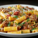 This recipe is everything you want from an easy weeknight supper: one pan, pantry-friendly ingredients, short hands-on time, and a crowd-pleasing finish. Using uncooked pasta simmered directly in the sauce concentrates flavor and absorbs the tomato-broth for a richer bite than adding cooked pasta to a sauce. It’s also flexible — swap sausages, adjust spice, or turn it vegetarian with sausage alternatives.