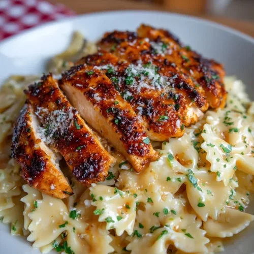 - Slice the blackened chicken thinly. Toss the drained pasta with the Alfredo sauce in the pot or a wide skillet. Add sliced chicken on top and gently fold to combine. Taste and adjust seasoning. Serve immediately.