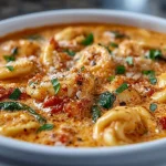 I remember the first time I made this slow cooker creamy tortellini soup on a rainy weeknight — the house smelled like garlic and tomatoes within an hour, and by dinner it tasted like a bowlful of comfort. This recipe turns simple pantry staples and fresh spinach into a rich, cozy soup that’s perfect for busy nights, light lunches, or when you need something soothing without fuss. If you like hands-off cooking and silky, cheesy pasta in a spoonable broth, this is one to keep on repeat. (If you enjoy other slow-cooker creamy mains, try this creamy lemon chicken for a different weeknight winner.)