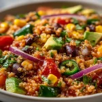 Start by cooking and cooling the quinoa so it’s fluffy, not gummy. While the quinoa cools, whisk a simple lime-agave dressing and chop the veggies. Combine the grains with beans, corn, tomatoes, peppers, onion, and cilantro, then toss with the dressing. Let it rest briefly to marry the flavors, or serve right away for a fresher crunch.