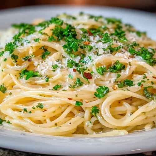 I make Spaghetti with Garlic and Oil most weeks when I want something fast, comforting, and unapologetically garlicky. This is the classic Italian aglio e olio: long strands of spaghetti tossed in warm, fragrant olive oil, paper-thin slices of garlic that turn tender with a kiss of red pepper, and a scattering of fresh parsley. It’s the kind of recipe that tastes like effort but comes together in the time it takes the pasta to cook. If you enjoy bold garlic flavors, you might also like this garlic cream shrimp and salmon recipe I tested last month.
