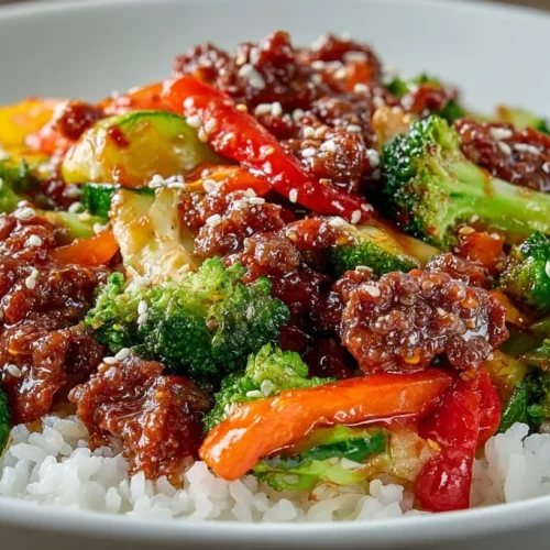 This bowl hits several high notes: savory ground beef, a clean garlicky sautéed vegetable mix, and rice that soaks up the sauce. It’s quick (about 25–30 minutes), budget-friendly (ground beef stretches far), and adaptable — you can turn down the heat for kids or pile on chili flakes for spice lovers. It’s perfect for busy weeknights, meal-prep lunches, or when you want a takeout-style bowl without the bill.