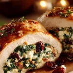I first made this spinach-and-cranberry stuffed chicken on a rushed weeknight and was surprised how festive it felt — bright tart cranberries, tangy goat cheese and a creamy spinach filling wrapped in a juicy baked chicken breast. It’s elegant enough for guests but simple enough to pull together on busy evenings, and it keeps well for lunches. If you enjoy stuffed-chicken riffs, you might also like this impressive cranberry‑brie stuffed chicken I bookmarked for inspiration.