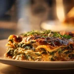 I grew up with a Sunday lasagna ritual, but this spinach-and-mushroom version quickly became my weeknight hero — lighter than meat lasagna, crowd-pleasing, and endlessly forgiving. It layers tender sautéed mushrooms and wilted spinach with creamy ricotta and gooey mozzarella, finished with bright tomato sauce and a sharp sprinkle of Parmesan. It’s the sort of dish you make when you want comfort without heaviness, a vegetarian centerpiece that still feels celebratory.