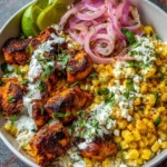 Serve the Tasty Street Corn Chicken Bowl warm, allowing everyone to customize their bowls with additional toppings like extra cotija cheese or lime juice. This dish is perfect for both casual meals at home and as a fun dish at gatherings.