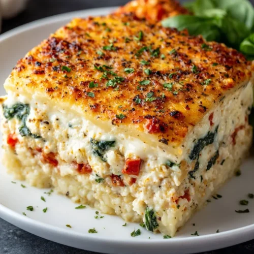 Notes/substitutions: use part-skim ricotta to cut calories, swap cream for a classic béchamel (butter + flour + milk) for a lighter texture, or stir in a beaten egg for extra stability when slicing. For a vegetarian umami boost, add sautéed mushrooms.